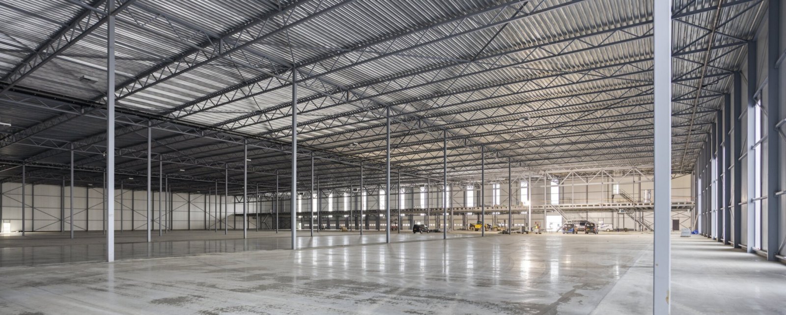 Een andere belangrijke stap is het storten van de betonvloer over de volledige oppervlakte van de hal. Deze vloer vormt de robuuste basis voor het verdere gebruik van het gebouw en is geschikt voor zware belasting, zoals gebruikelijk is bij logistieke toepassingen. Met de afronding van deze fundamentele onderdelen is het gebouw gereed voor de volgende fase in de realisatie.