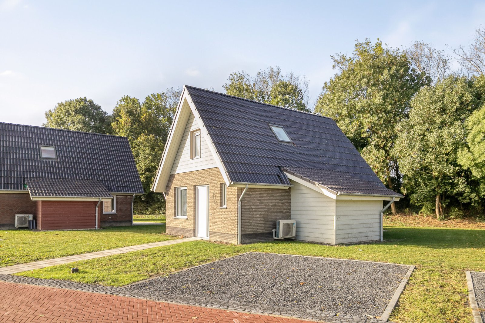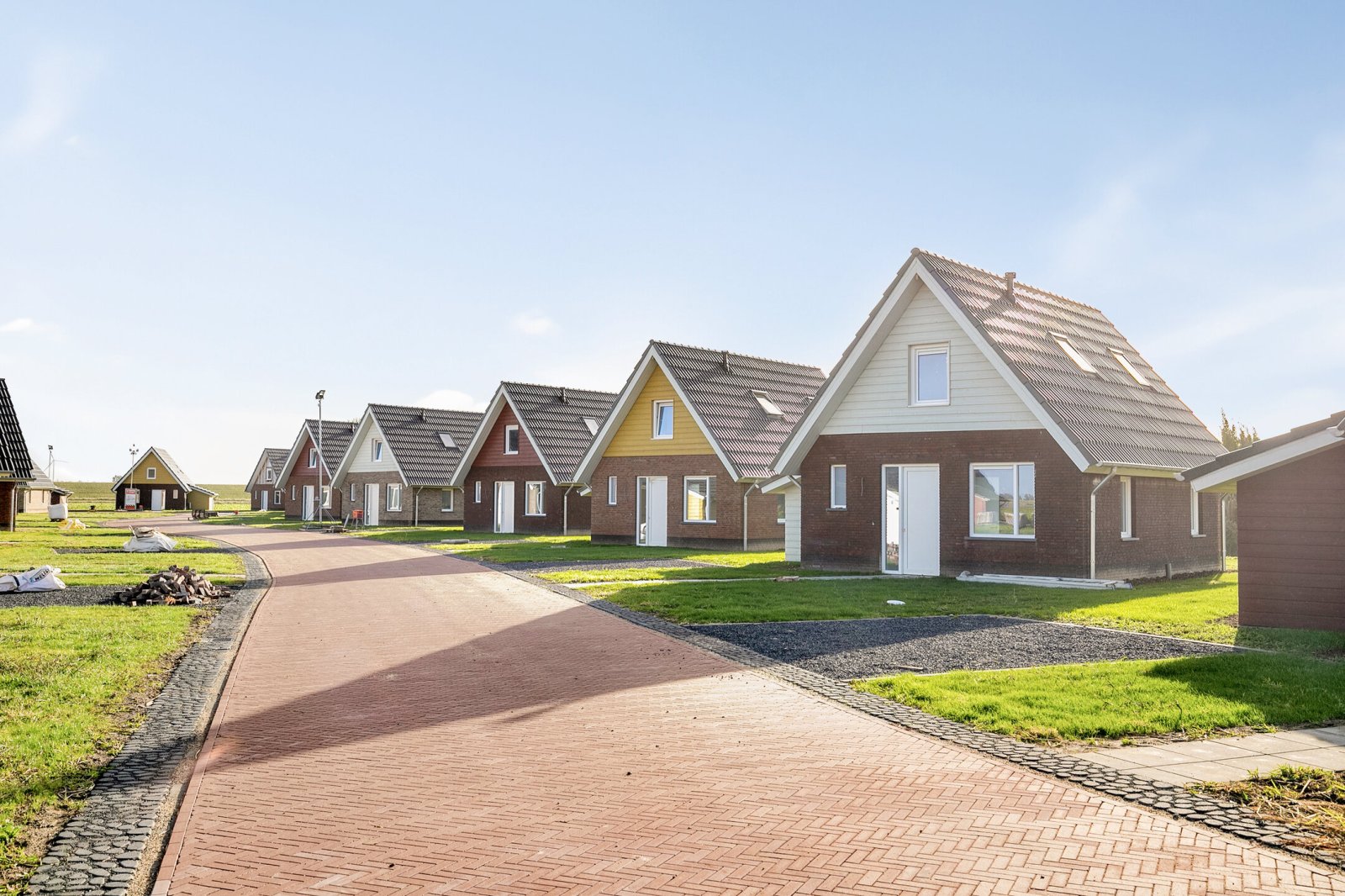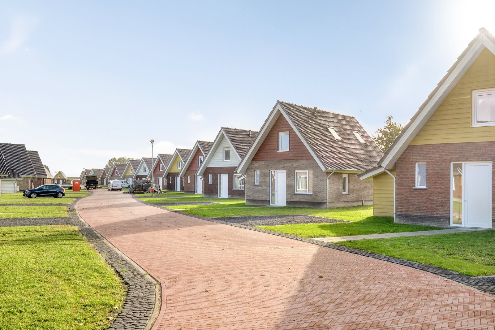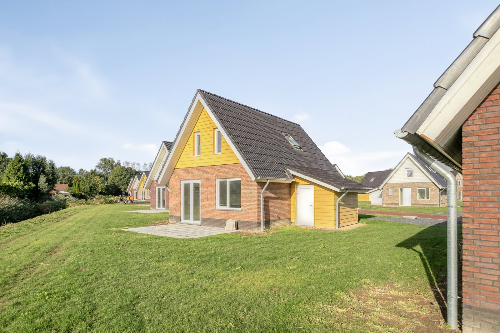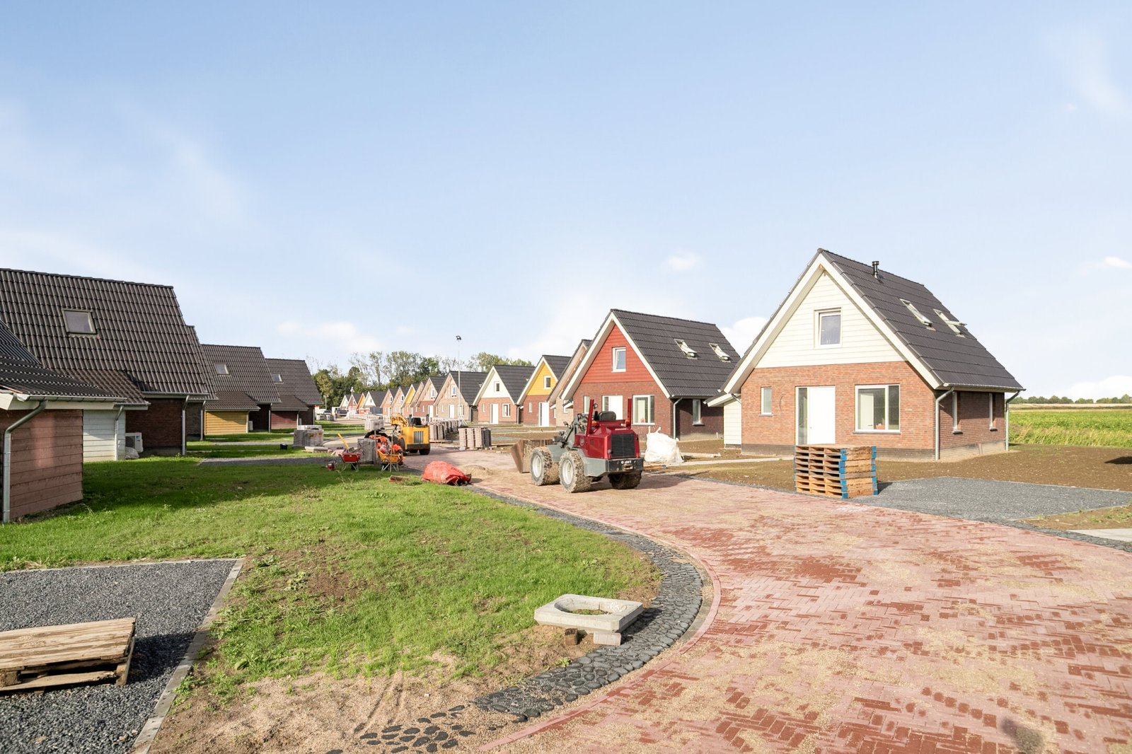 The construction of Sluyshaven Holiday Park is nearing completion. The interior finishing of the holiday homes is in full swing, with the first saunas already installed. Work is also continuing on the infrastructure, including paving at the rear of the park, which is now in its final phase. All homes are expected to be completed in the fourth quarter of 2025. Below are recent photos taken on Monday 15 September 2025.